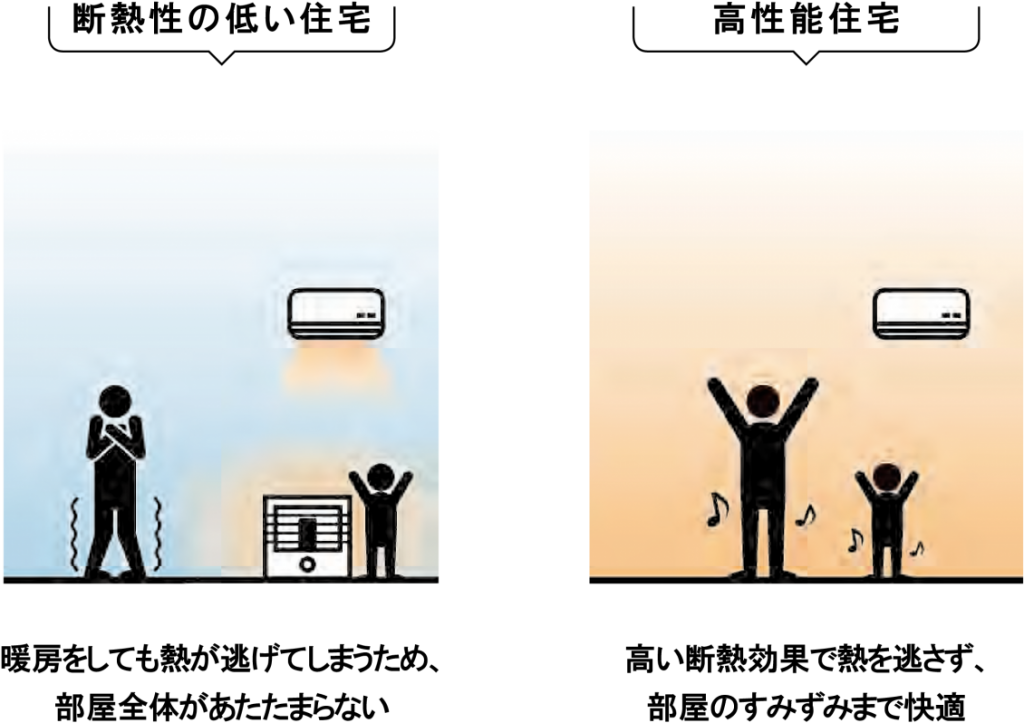 高性能住宅なら暖房を止めても室温が下がりにくく、快適さをキープできます。