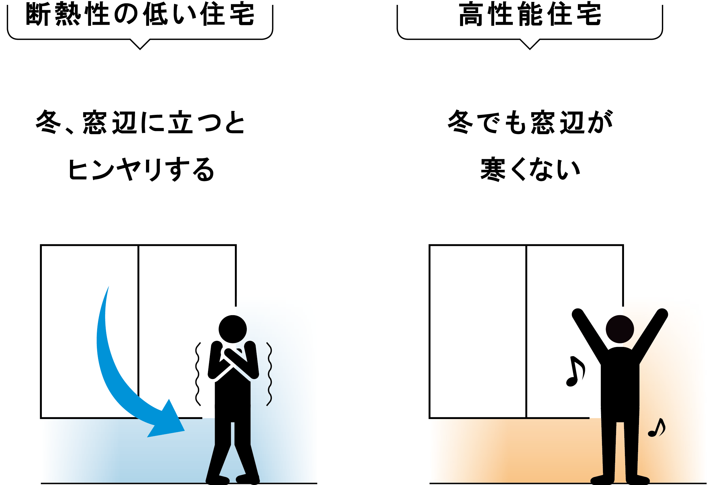 家の断熱性能が低いと、冷たい
