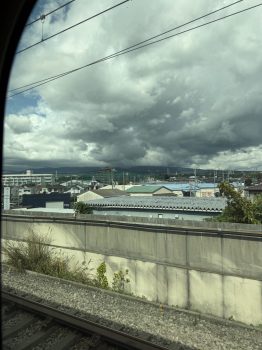 途中、新幹線から富士山が見えるあたりを通過するも、雲しか見えず(残念。。)