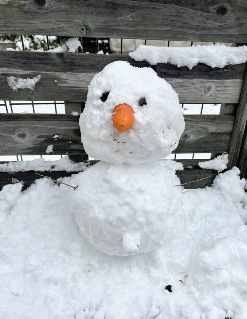 そして、気づけばできあがっていた雪だるま。冬の力作完成です。